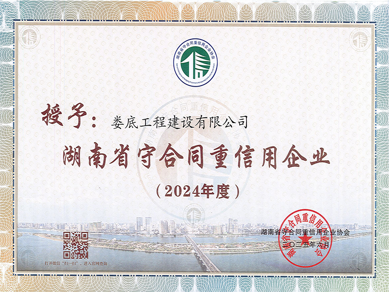 2024年度湖南省守合同重信用企業榮譽證書