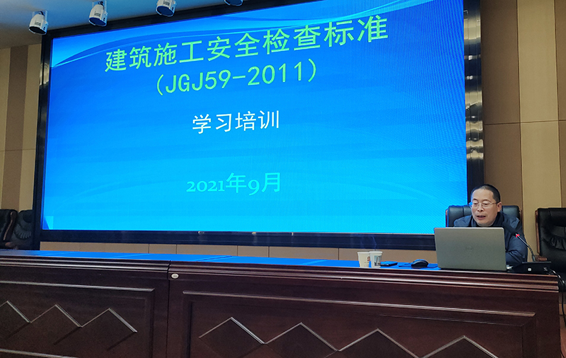 同時,為了提升員工的安全技術(shù)知識水平,提高項目管理人員的安全管理業(yè)務(wù)水平,促進技術(shù)和知識的更新。當晚6:30分,公司特邀請婁底市住建局質(zhì)安站安全部部長羅新湖來司授課,主講《建筑施工安全檢查標準JGJ59-2011圖解》。