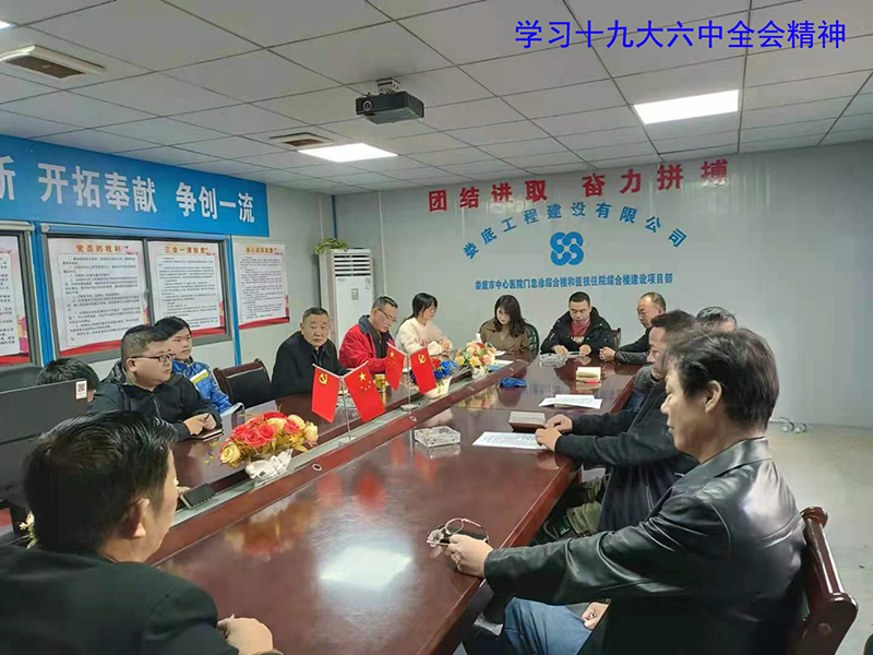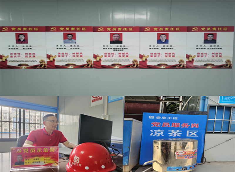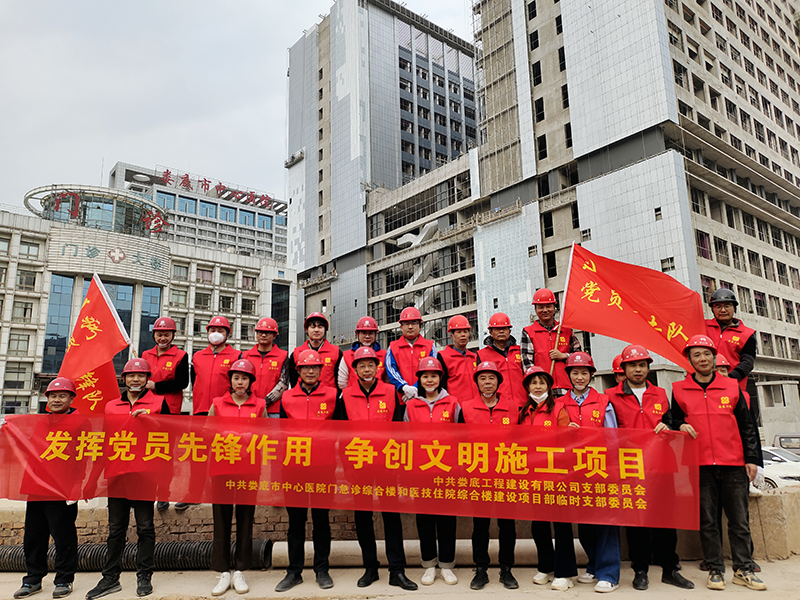 該項目地處婁底市最繁華街道的十字路口,又是婁底市最大的單體建筑公共項目。項目中標(biāo)后,公司立即配備優(yōu)秀骨干組建項目部班子,并成立了中共婁底市中心醫(yī)院門急診綜合樓和醫(yī)技住院綜合樓建設(shè)項目部臨時支部委員會,推舉項目經(jīng)理姚春旭擔(dān)任臨時黨支部書記,并安排了黨建指導(dǎo)員。該支部目前有黨員8人。項目部設(shè)置了黨員活動室,文化走廊等,臨時黨支部“五化”建設(shè)達(dá)標(biāo)。