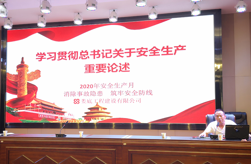 為貫徹《湖南省住房和城鄉(xiāng)建設(shè)廳關(guān)于開展2020年建筑施工“安全生產(chǎn)月”和“安全生產(chǎn)三湘行”活動的通知》(湘建建函[2020]69號)、《婁底市住房和城鄉(xiāng)建設(shè)局(市人民防空辦公室)安全生產(chǎn)委員會關(guān)于開展2020年建筑施工“安全生產(chǎn)月”活動的通知》(婁建安委發(fā)[2020]5號)要求,深入學(xué)習(xí)貫徹習(xí)近平總書記關(guān)于安全生產(chǎn)重要論述,牢固樹立安全發(fā)展理念,堅持“安全第一、預(yù)防為主、綜合治理”的安全總方針,進(jìn)一步加強(qiáng)公司安全生產(chǎn)管理工作,營造安全生產(chǎn)良好氛圍,公司于2020年6月10日19點組織各部門和項目部人員在會議室舉行以“消除事故隱患,筑牢安全防線”為主題的“安全生產(chǎn)月”活動宣貫會。會議由總工程師李偉主持,公司總經(jīng)理胡勁、副總經(jīng)理彭洪偉、顏克靈出席了本次會議并講話。